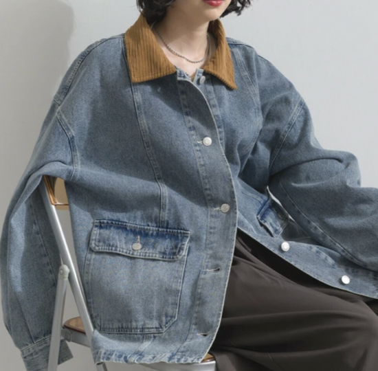 衿にはコーデュロイ生地を使用し、ヴィンテージライクなアクセントをプラスしました。