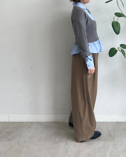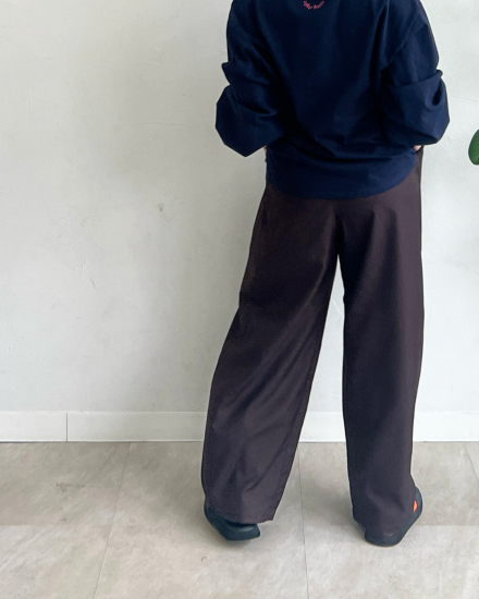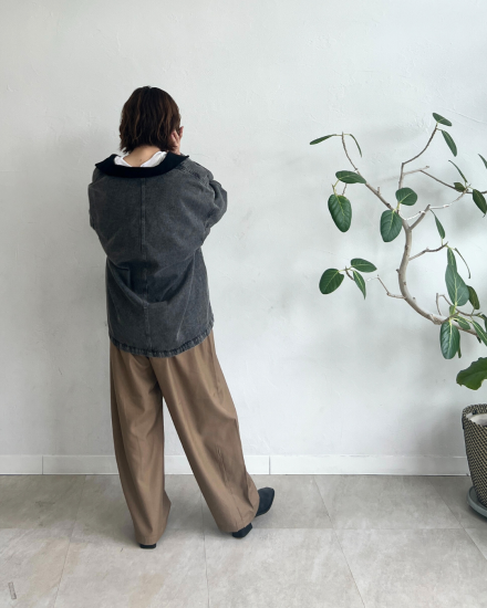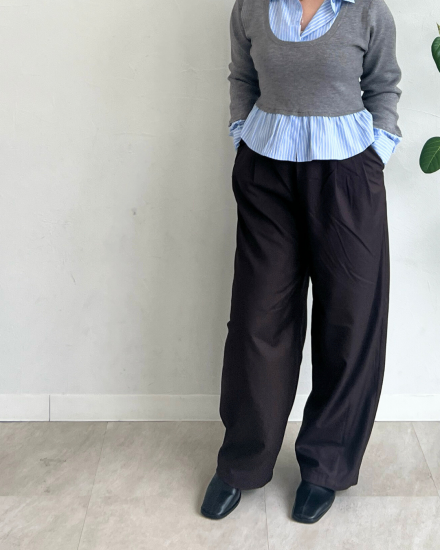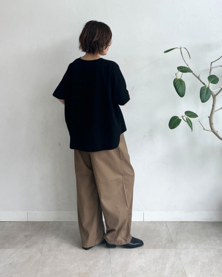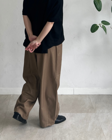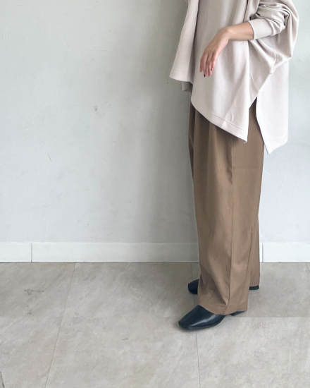 ・ツータック入りのコクーンシルエットが、腰まわりにゆとりを持たせつつ、裾にかけて自然にすぼまる美しいラインを実現