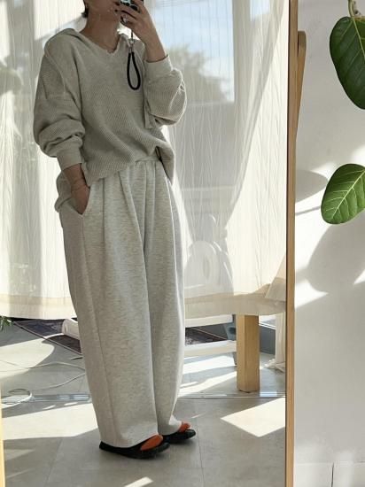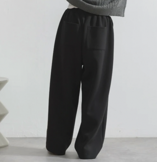 ・ほどよいハリ感と軽さが魅力のダンボールスウェット素材を使用したコクーンシルエットパンツ