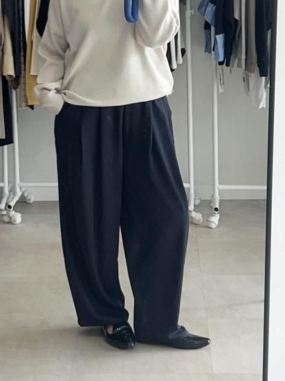 ・ポリエステルツイル素材を使用したツータック入りのコクーンシルエットパンツ