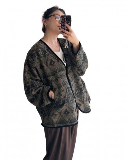 異国情緒漂うエスニック調ジャガードを贅沢に使用したVネック羽織りジャケット。