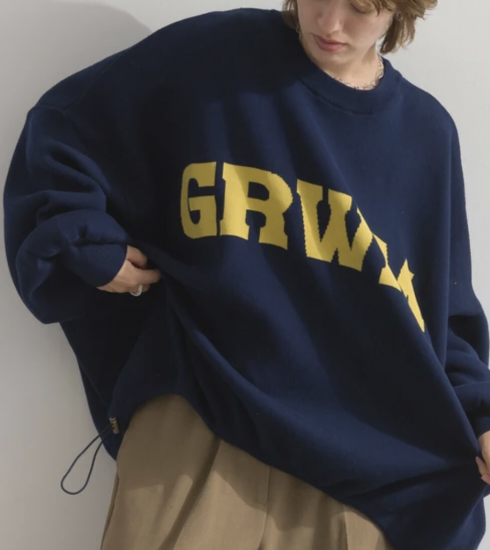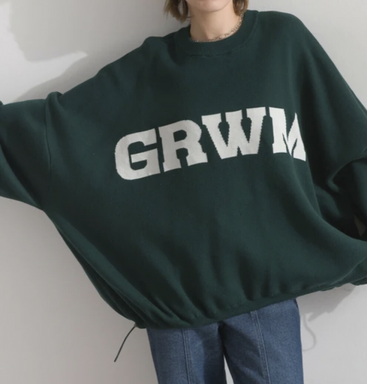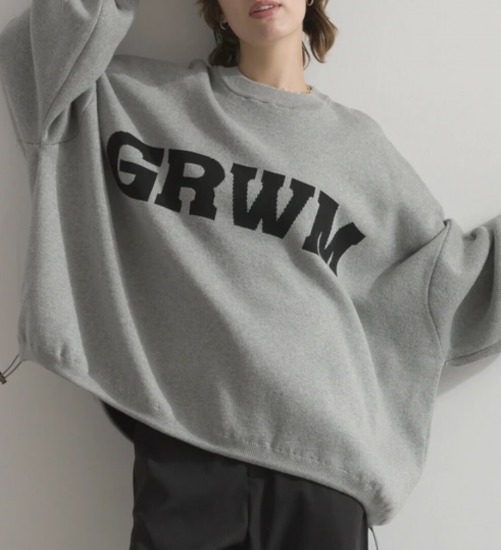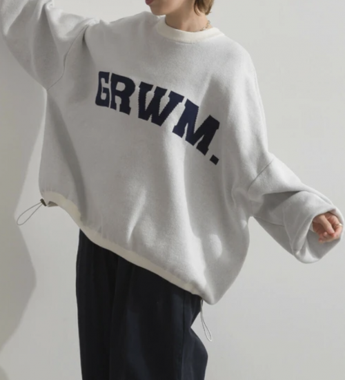 大胆にあしらわれた「GRWM(Get Ready With Me)」のジャカードロゴが視線を惹きつけ、デイリーに着回せるシンプルなフォルムにアクセントを加えています。オーバーサイズのボディとドロップショルダーによって、程よいルーズ感とトレンド感を兼ね備えたバランスに仕上がっており、ボトムを選ばずスタイリング可能。裾口の両サイドにはスピンドル入りのドローコードが施されており、シルエットの調整も自在。ウエストでブラウジングすれば、丈感に変化をつけた着こなしも楽しめます。