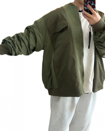 遊び心のあるリメイク風デザインで存在感を放つMA-1ジャケット